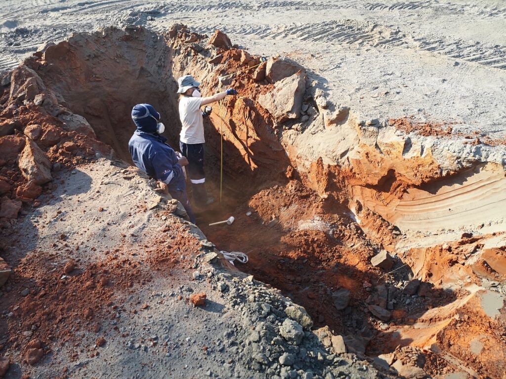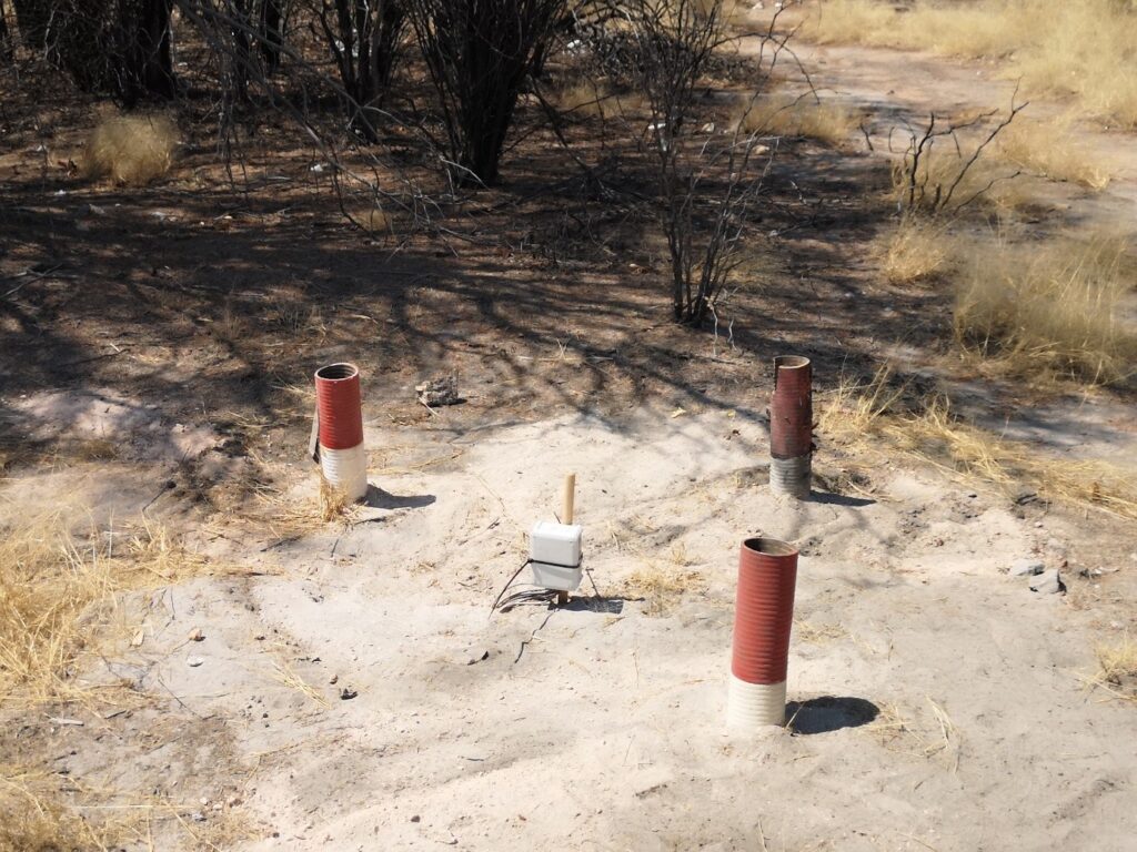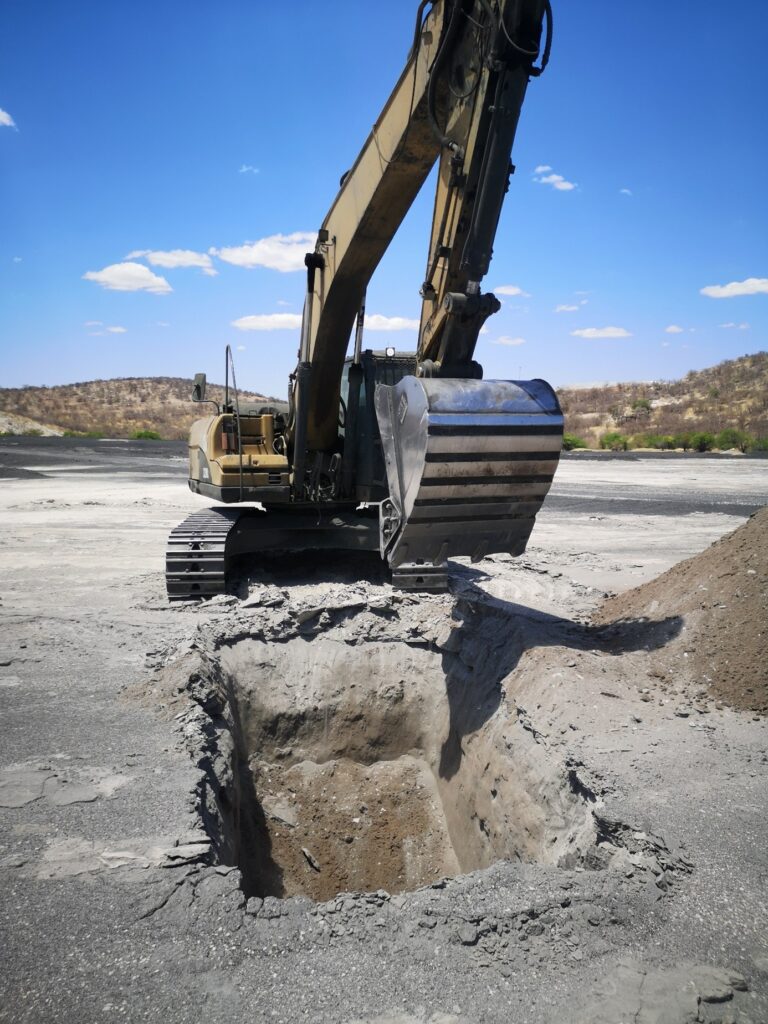 During a field campaign in September and October 2025 Karoline Kny and Stefan Norra from Potsdam University and Florian Blum from Hydroisotop visited the mine residue deposits at Tsumeb and Rosh Pinah. At Tsumeb a meteorological station was implemented together with Sinomine engineers (fig. 1) as well as soil moisture sensors for different depths (fig. 2) as was done also at Rosh Pinah. The soil moisture sensors had to be assembled on site at Tsumeb (fig. 3) and Rosh Pinah. Further sensor systems will be implemented during the upcoming field visits. Aside of this, excavators were used for sample collection at Tsumeb and Rosh Pinah (Fig. 4). Soil samples were taken from those pits by Kamuiua Kamundu from Sinomine, Karoline Kny and Stefan Norra at Tsumeb (Fig. 5).