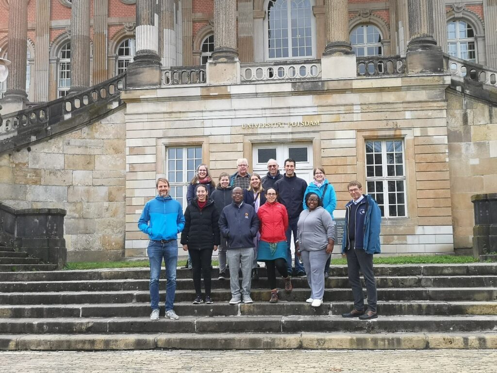 Similar sampling was carried out at the mine residue deposits at Rosh Pinah by Florian Blum, Karoline Kny and Paulina Nangombe from Rosh Pinah Zinc. Here also a comprehensive groundwater sampling took place. More and above that, Karoline Kny sampled mine residue material and surface water at Matchless and Otjihase near Windhoek in cooperation with Consolidated Copper. This work is fundamental to understand the soil water dynamics for the implementation of greening measures. In 2025, further research was carried out by Sensatec and Karlsruhe Institute of Technology on behalf of Rosh Pinah Zinc to study the mobility of lead in soils in and around Rosh Pinah. In addition to that, in September 2025, a team around Christoph Külls from Technical University of Lübeck visited the Stampried Aquifer Region for designing baseline study concepts to analyse impacts of mining activities on the groundwater aquifer. From 16th till 17th of October 2025 a status colloquium took place at Potsdam. Harmony Musiyarira and Rennie Munyayi from the Namibia University of Science and Technology (NUST) participated in person (fig. 6). The next in person meeting for the whole WaMiSAR project will be organised in 2026 in Windhoek, Namibia, by our colleagues from NUST.