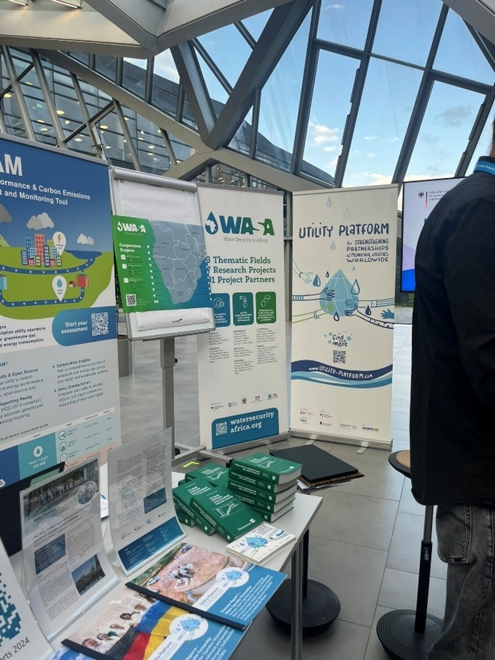 WASANet was featured in the exhibition area, represented by Marie-Louise Chagnaud (German Water Partnership). She engaged with African water operators and regulators, e.g. RAND Water, South Africa, Sambia as well as with KfW and the European Commission, exploring how research projects can support operational challenges and how utilities can contribute to scientific development. These exchanges highlighted strong interest in research-driven approaches to climate resilience, digitalisation and service improvement.