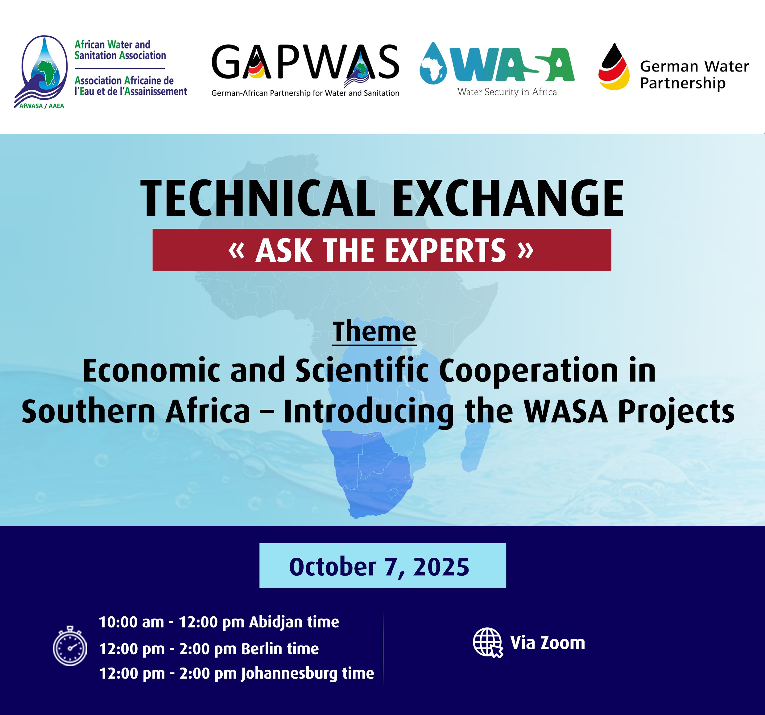 During the October edition of the German–African “Ask the Experts” webinar series, WASA projects engaged directly with water utilities, authorities, and private-sector professionals from across Africa. The session showcased innovative approaches in groundwater exploration, early warning systems, and mine-water reuse, highlighting how African–German research partnerships are driving practical solutions for regional water security. The webinar reached nearly 500 experts through AfWASA’s knowledge platform, strengthening pathways for collaboration, upscaling, and impact.